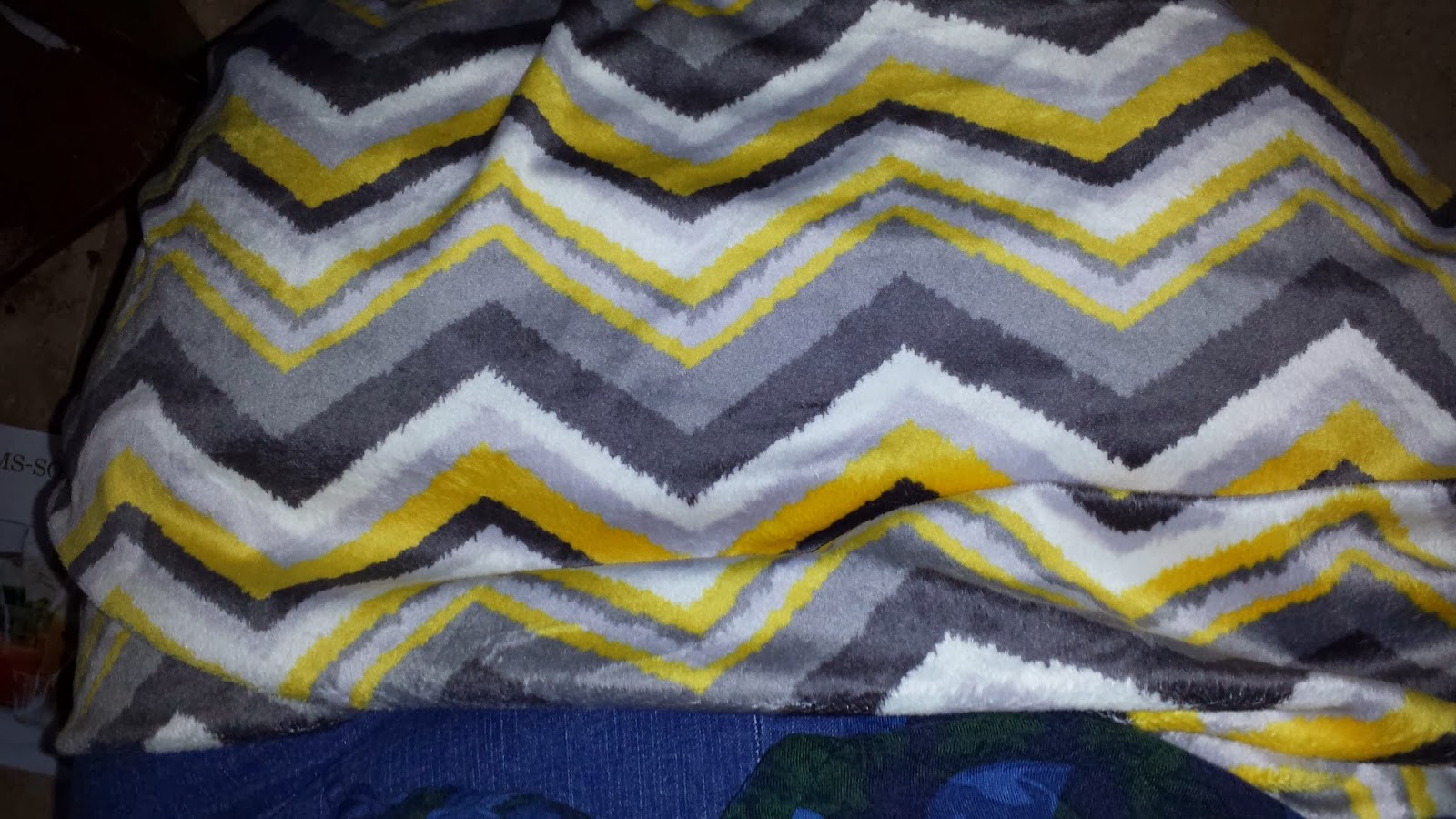 A minky throw, for $15 with 2 pieces of minky big enough for the back of 2 baby quilts; one zigzaggy and one solid yelllow....I bought it. Now I'm designing a quilt to go with the back.
