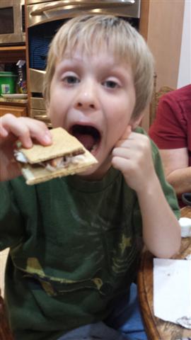 I noticed that my 7 year old grandson wanted to experiment with s'mores this year so while they were here we made s'mores twice.